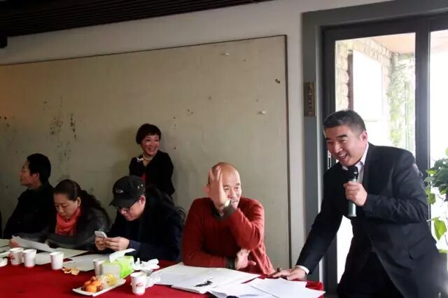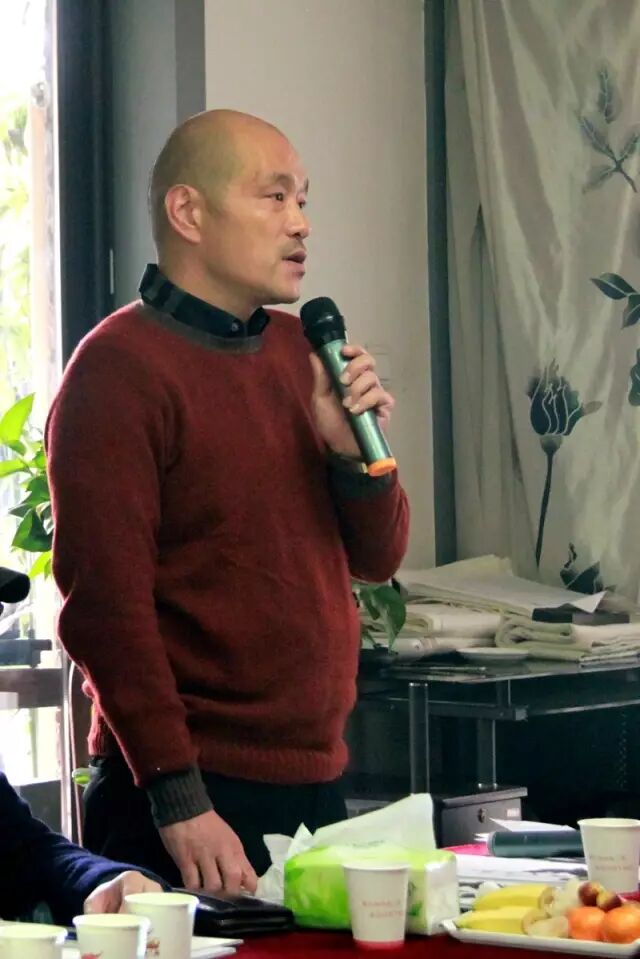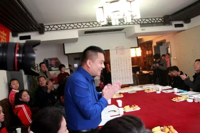 爱心书画家代表江书学老师在活动中讲话:“作为书法家我们要用手中的笔来体现对社会的关爱,写出更好的作品和在座的企业家一起为需要帮助的人送去温暖。”