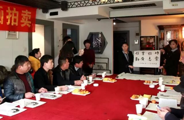 义拍活动在东方拍卖公司金牌拍卖师崔胜军主持下进行。第一幅江书学老师的义拍作品《毛泽东诗词》,从起拍价2000元然后爱心激增,最终由冀商商会会员企业趣购购物商城河北分公司总经理宋朝锋先生以9900元拍下。为接下来的义拍开了个好头。